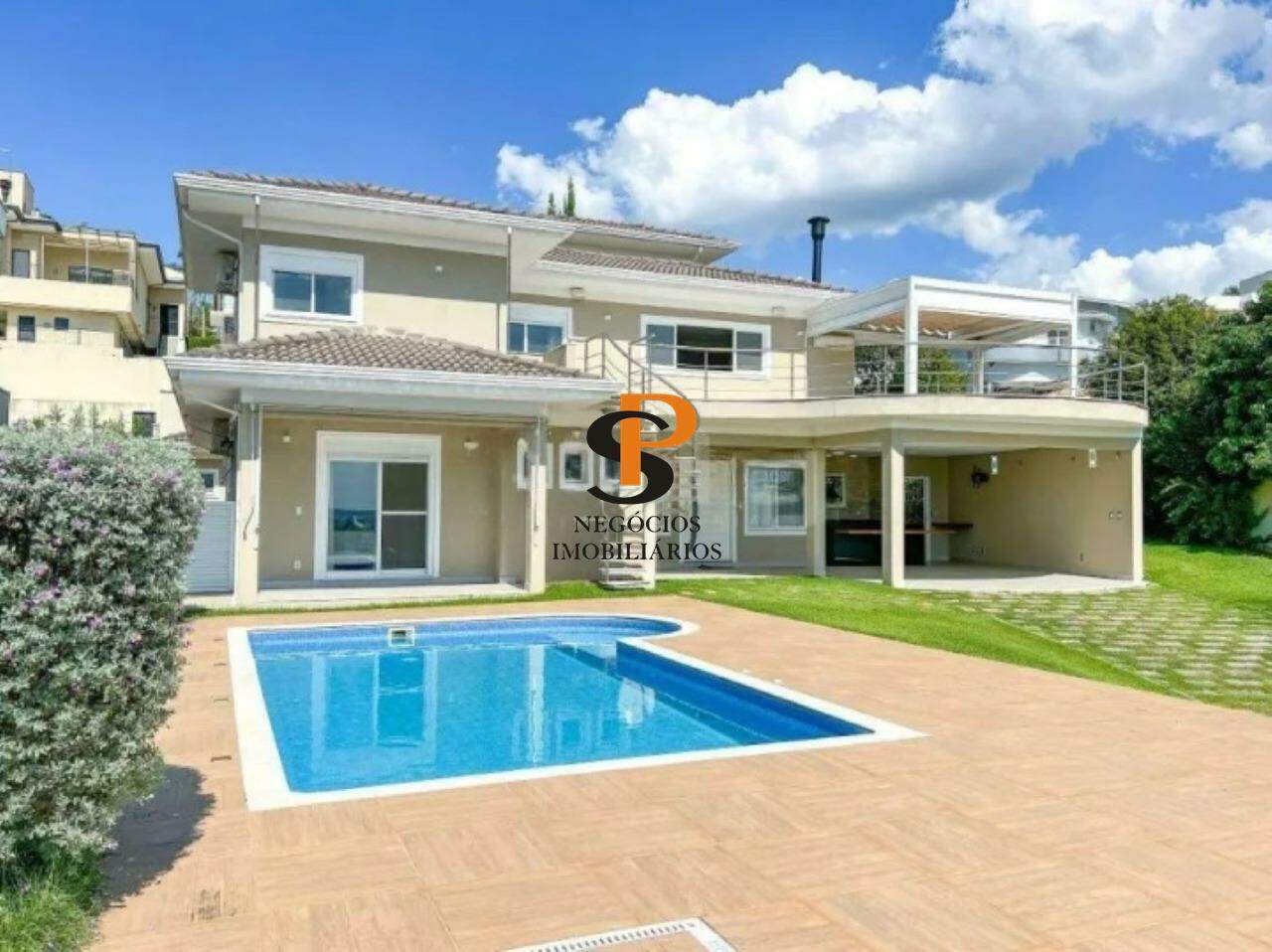 Completam o ambiente uma charmosa área gourmet com churrasqueira, amplo quintal gramado e uma bela piscina