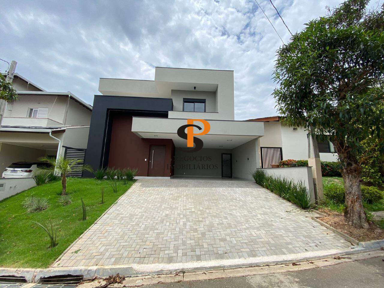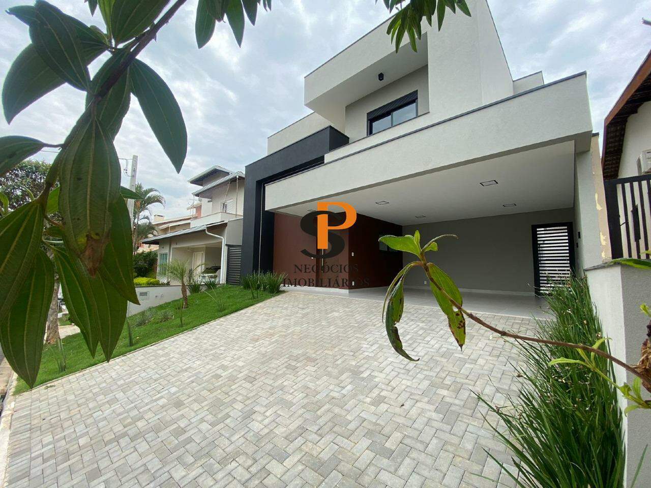 Sobrado novo à venda no Condomínio Jardim das Palmeiras, em Vinhedo/SP, com arquitetura moderna, fachada imponente e ambientes integrados que valorizam a iluminação natural.
