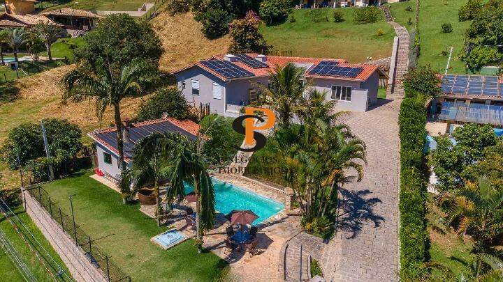 A piscina com aquecimento solar permite o uso durante todo o ano, e o amplo quintal gramado é ideal para lazer ao ar livre.