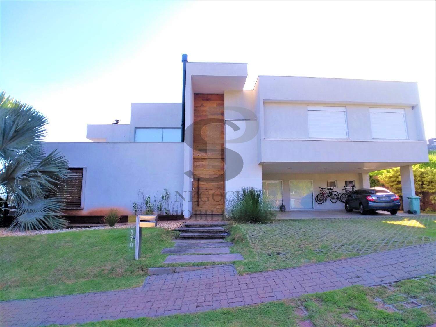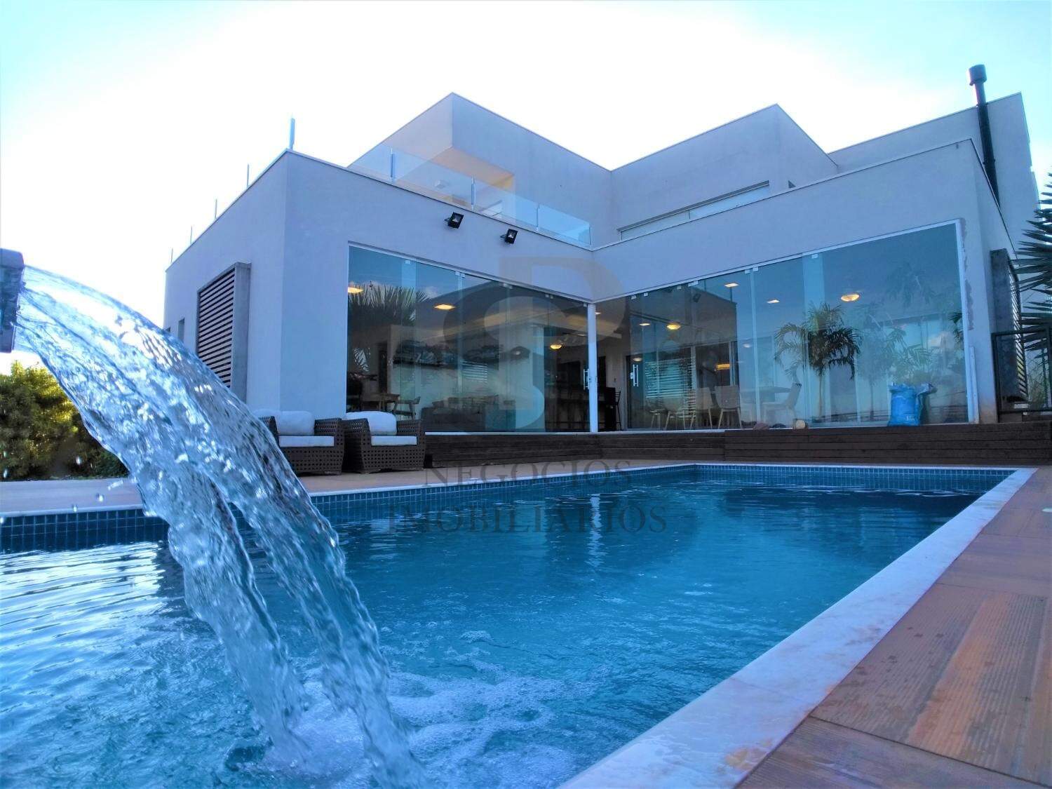 Espaço, luxo, ambientes amplos, localização privilegiada, essas são algumas das qualidades desta residência, são 4 suítes, todas com armários ou closet?s e ar condicionado, um escritório térreo reversível para a quinta suíte, lavabo, jardim de inverno vertical, sala de jantar para 8 ou mais pessoas, sala de estar com pé direito duplo integrada com área de lazer e home, home theater, cozinha americana planejada e com ilha, espaço gourmet amplo com salão de jogos ou academia, tudo isso proporcionado pela linda paisagem, piscina com cascata, banheiro e sauna, quintal gramado, garagem coberta para 3 veículos grandes.