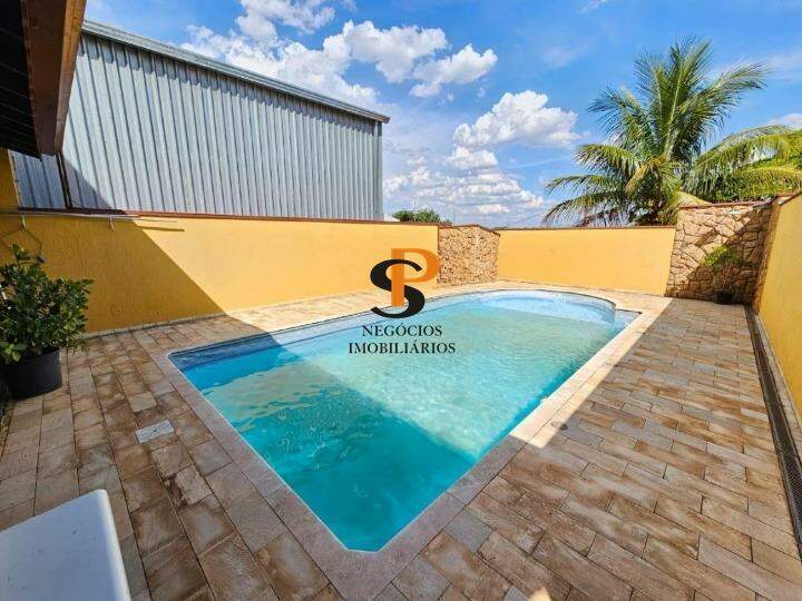 O espaço de lazer é composto por uma piscina, churrasqueira e um banheiro externo.