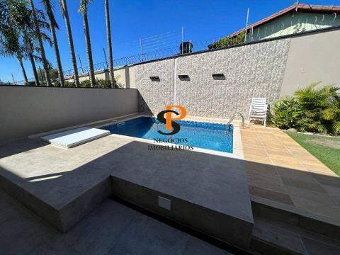 Sala de TV, sala de estar e jantar integradas, cozinha planejada, despensa, lavanderia, completando o ambiente, uma ampla e charmosa área gourmet com churrasqueira, forno de pizza, pia e fogão a gás tudo acoplado em armários planejados, uma bela piscina, garagem coberta para 2 carros e mais 2 vagas descobertas.